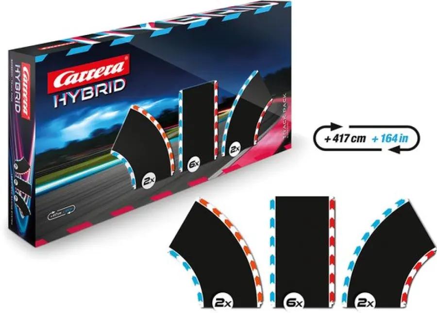 De set bevat 2 bochten naar rechts, 2 bochten naar links en 6 rechte stukken, allemaal met de originele kwaliteit en perfecte pasvorm van Carrera Hybrid. Je kunt ze eenvoudig combineren met je bestaande baan, waardoor je volop kunt variëren en experimenteren met je circuit. Zo blijft het racen altijd spannend en afwisselend.