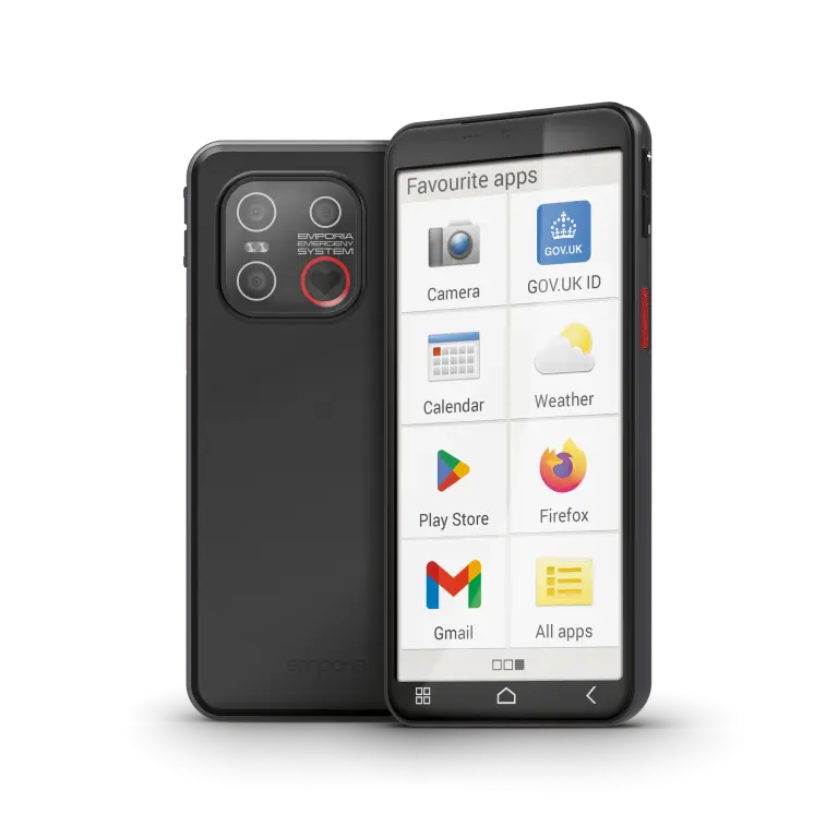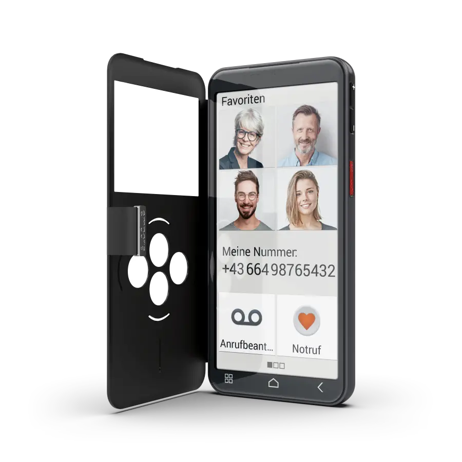 De emporiaSMART.6lite is verkrijgbaar in stijlvol zwart en zilver, met een slank en licht ontwerp van 173 gram. Dankzij de rechthoekige vorm en het flat scherm ligt hij prettig in de hand. De telefoon wordt geleverd met een snelle USB Type-C kabel en een headset, zodat je direct aan de slag kunt.