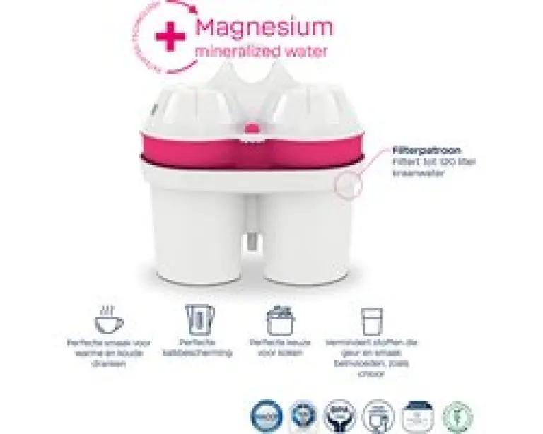 In de verpakking vind je een speciale Magnesium Mineralized Filtercartridge die het water niet alleen filtert, maar ook verrijkt met magnesium. Dit mineraal draagt bij aan het versterken van je immuunsysteem, ongeacht het seizoen. Zo drink je niet zomaar water, maar geef je je lichaam een extra boost met elk glas.
